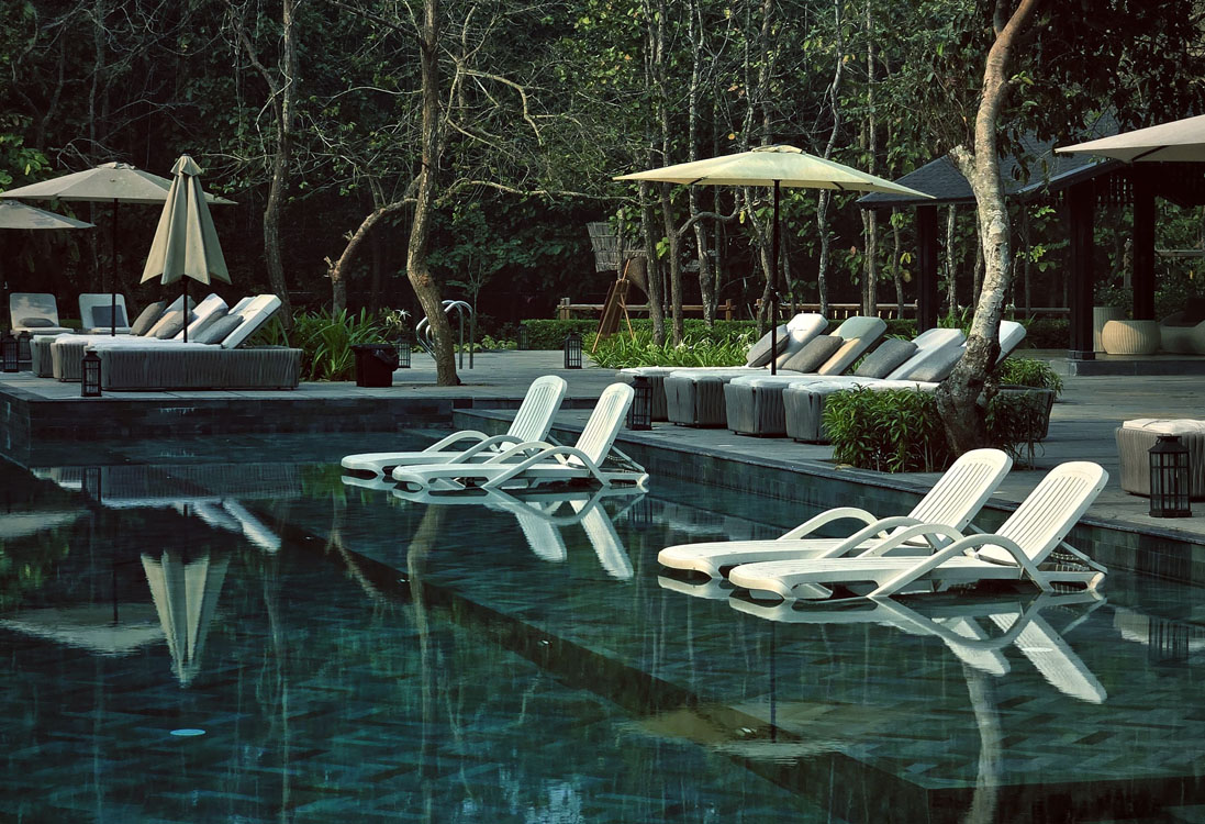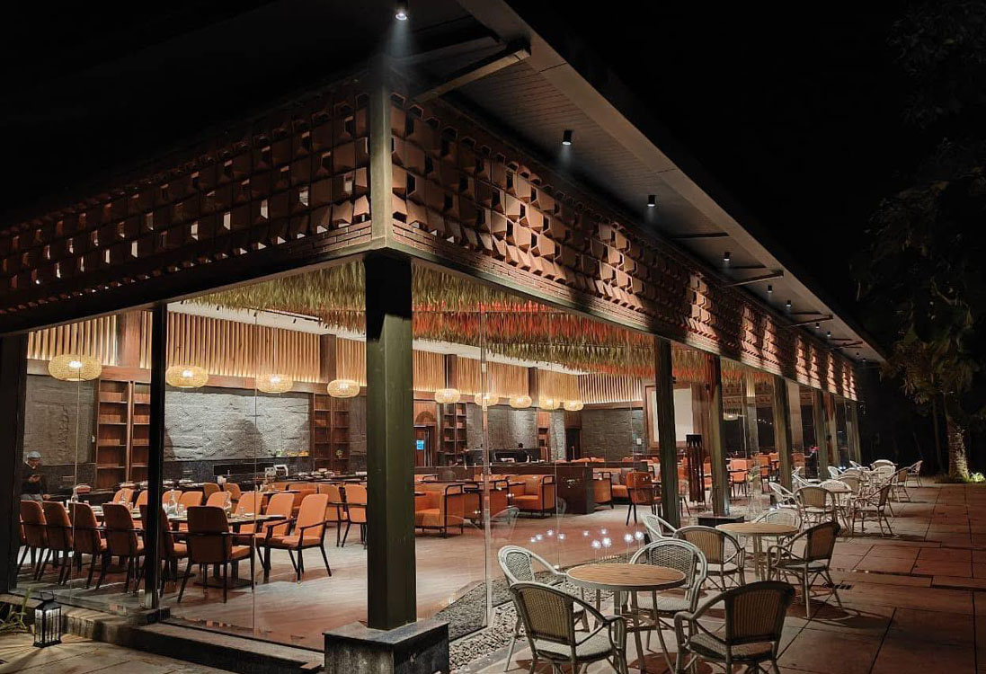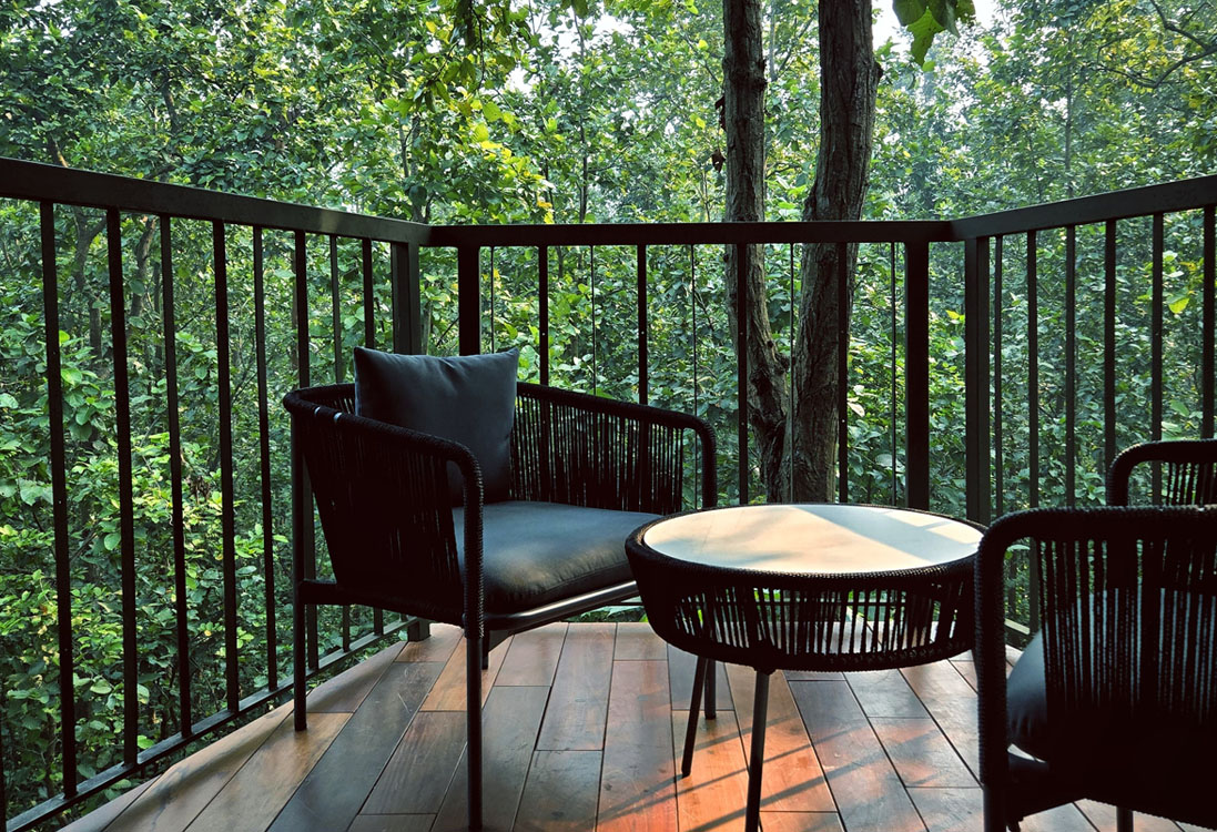 Primary frame system (cottages & tower rooms) , Light-gauge roof & canopy trusses, Elevated walkways, decks & viewing platforms, Pool decking, cafe, pergolas, banquet frames, Exposed steel staircases & balcony rails with fine metal jaali patterns referencing local terracotta motifs, Interior metal stud partitions & ceiling grids for fast installation and integration of services (concealed gutters for AC and plumbing).