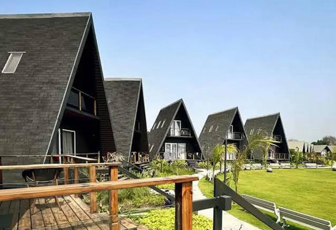 Use of Mild Steel (MS) / Structural Steel Frame, Mild steel offers better modularity, faster erection, lighter structural weight compared to full RCC (reinforced concrete) frames — beneficial in resort settings (landscape, large spans, open lobbies).