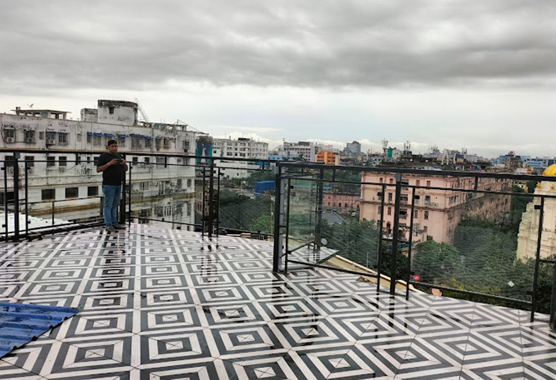 The building is envisaged as rooftop for “Octa Restaurant” – a modern destination of refreshment, here the Structural system: Mild steel (MS) columns, beams , the Structural system uses mild steel (MS) for the columns, beams, bracing and roof framing. This allows for a lightweight yet robust structure suited for rooftop placement