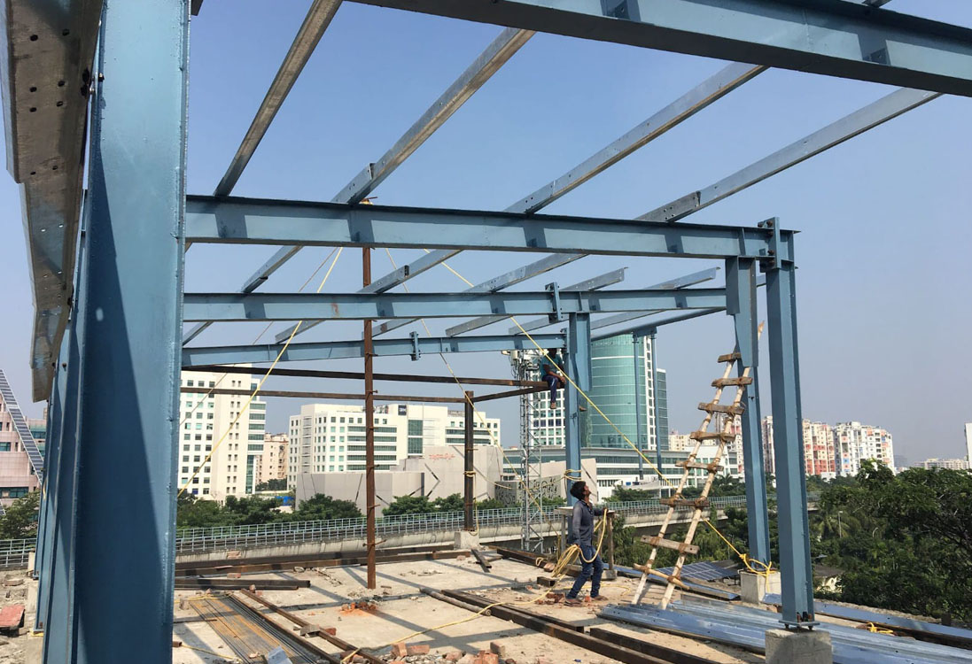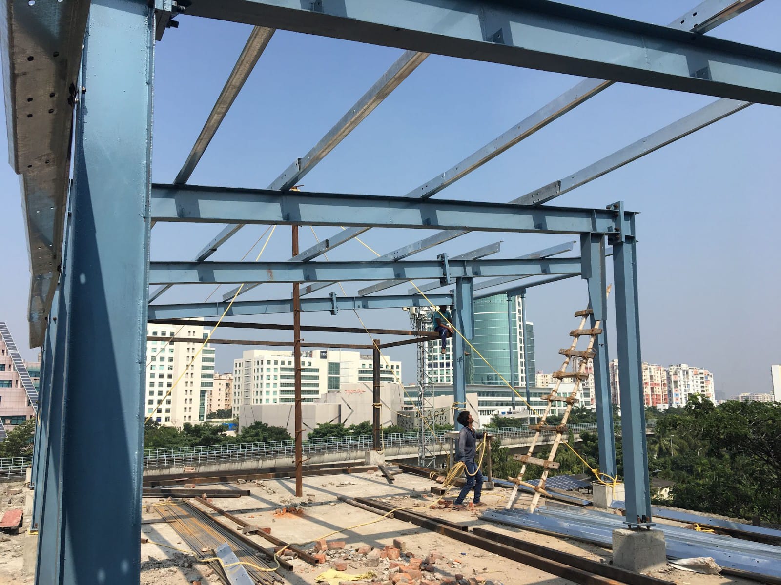 The Rooftop Guest House Project at New Town has been designed and developed using a Pre-Engineered Building (PEB) structural system. This modern approach integrates lightweight steel framing with aesthetic architectural finishes, ensuring rapid installation, structural stability, and long-term durability.