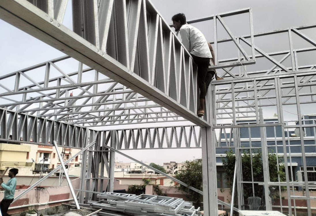 The Rooftop Office Building Project at Patna demonstrates an innovative blend of modern workspace design and green architecture, developed atop an existing RCC structure using a Pre-Engineered Steel (PEB) system.